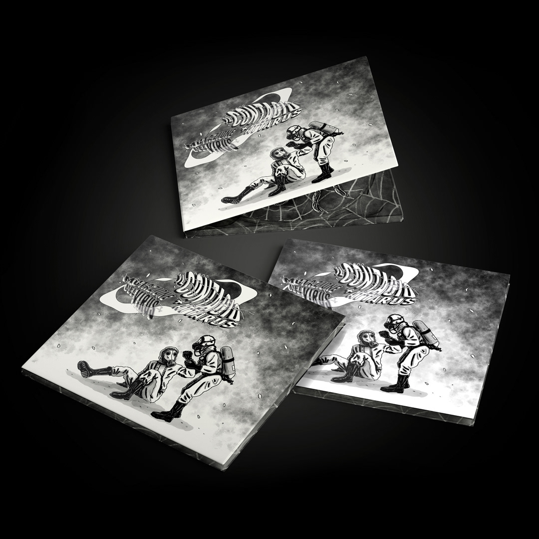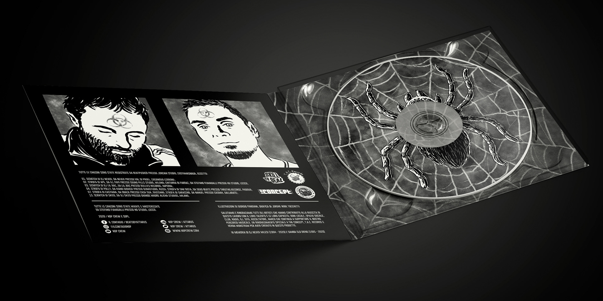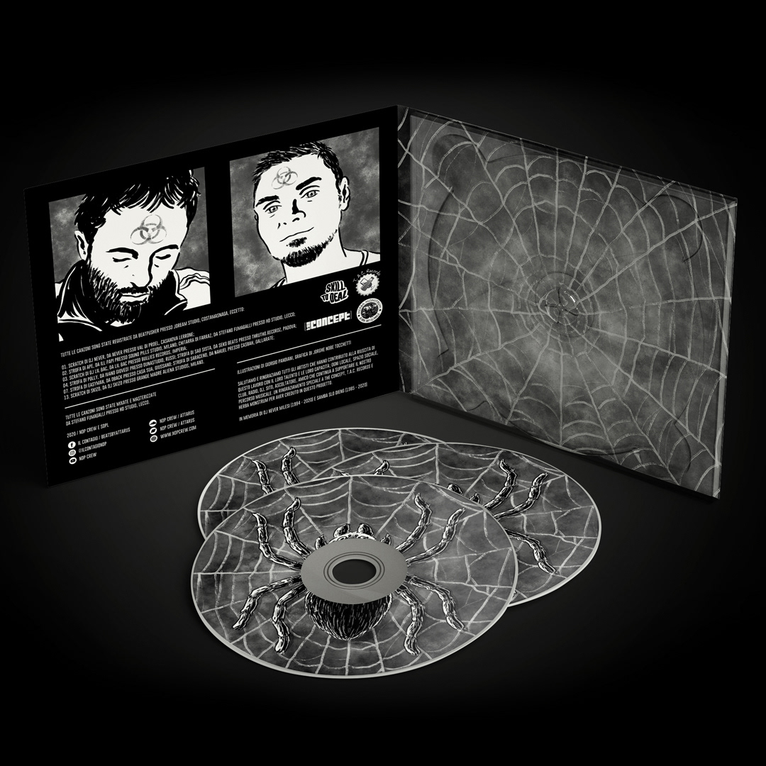 Cover, back and internal illustrations for "Mutazione del virus" ("Mutation of the virus"), the new album by Il Contagio & Attarus, released in November 2020 by Skill To Deal Records.