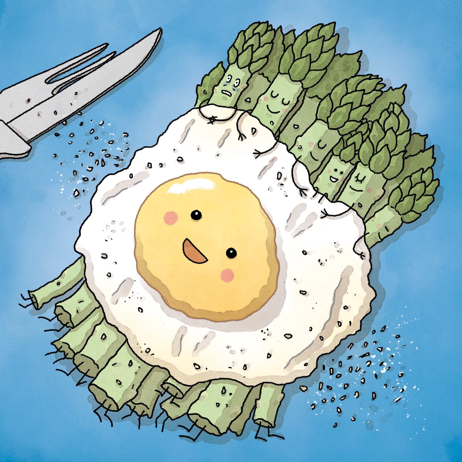 An ongoing series of silly illustrations created for Carla Ardis italian recipes, in the "Wellbeing Section" of "The Happy Hood" (a community zine that celebrates good news in Northampton). Can food be happy... to be eaten? Only if it's cooked properly!